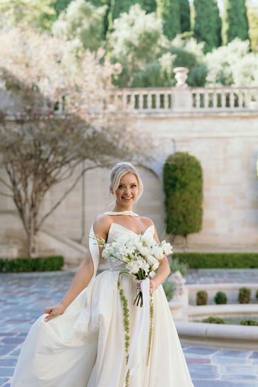 This is a collection of elegant bridal looks, featuring beautiful gowns, bouquets, and outdoor settings. The images capture the essence of timeless romance and sophistication, with the bride as the focal point.